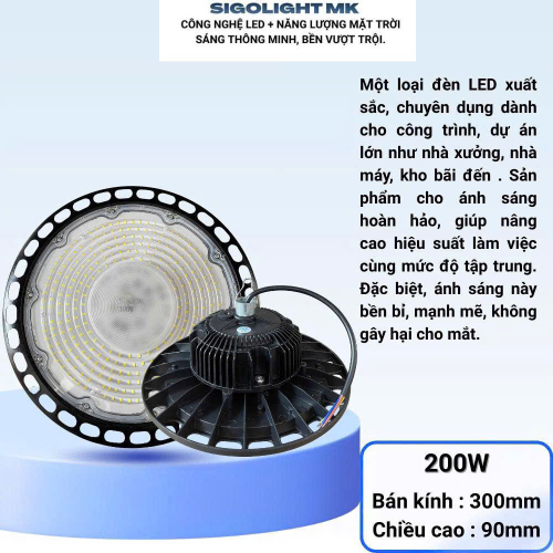 Đèn LED UFO nhà xưởng công suất 200W - SINOL MK– Ánh sáng siêu sáng, tiết kiệm điện